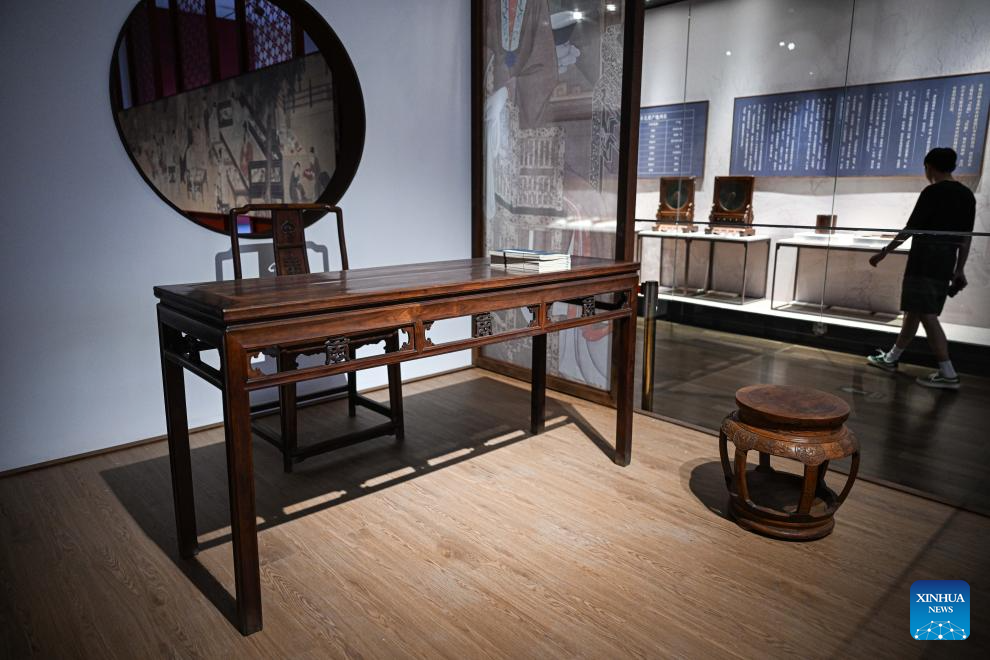 HAIKOU, 1 septiembre, 2024 (Xinhua) -- Imagen del 31 de agosto de 2024 de piezas exhibidas en una exposición especial en el Museo de Hainan, en Haikou, en la provincia de Hainan, en el sur de China. Una exposición que muestra las reliquias culturales de Hainan recolectadas por el Museo del Palacio se lleva a cabo en el Museo de Hainan. Un total de 96 piezas con características de Hainan son exhibidas, incluyendo muebles tradicionales, adornos y artículos de papelería, etcétera. (Xinhua/Pu Xiaoxu)