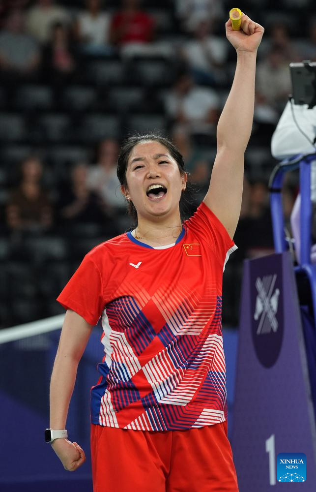 PARIS, 2 septiembre, 2024 (Xinhua) -- Xiao Zuxian de China festeja después de ganar el partido por la medalla de oro de individual femenino SL3 de para bádminton en los Juegos Paralímpicos de París 2024, en París, Francia, el 2 de septiembre de 2024. (Xinhua/Xing Guangli)