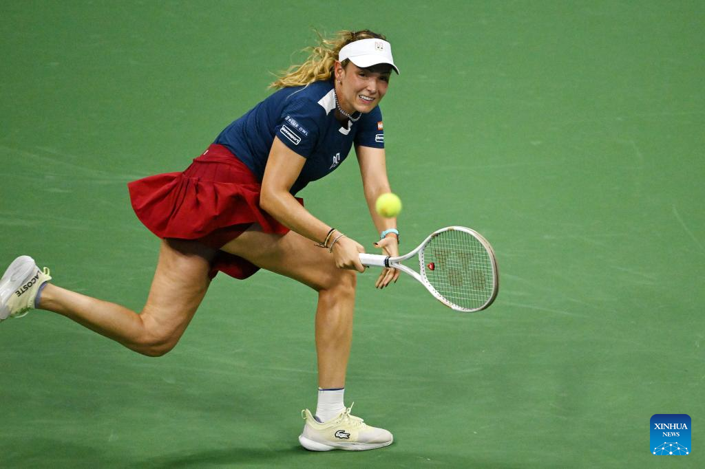 NUEVA YORK, 2 septiembre, 2024 (Xinhua) -- Donna Vekic, de Croacia, devuelve la pelota a Zheng Qinwen, de China, durante el partido de la cuarta ronda de individuales femenino en el campeonato de tenis US Open 2024, en Nueva York, Estados Unidos, el 2 de septiembre de 2024. (Xinhua/Li Rui)
