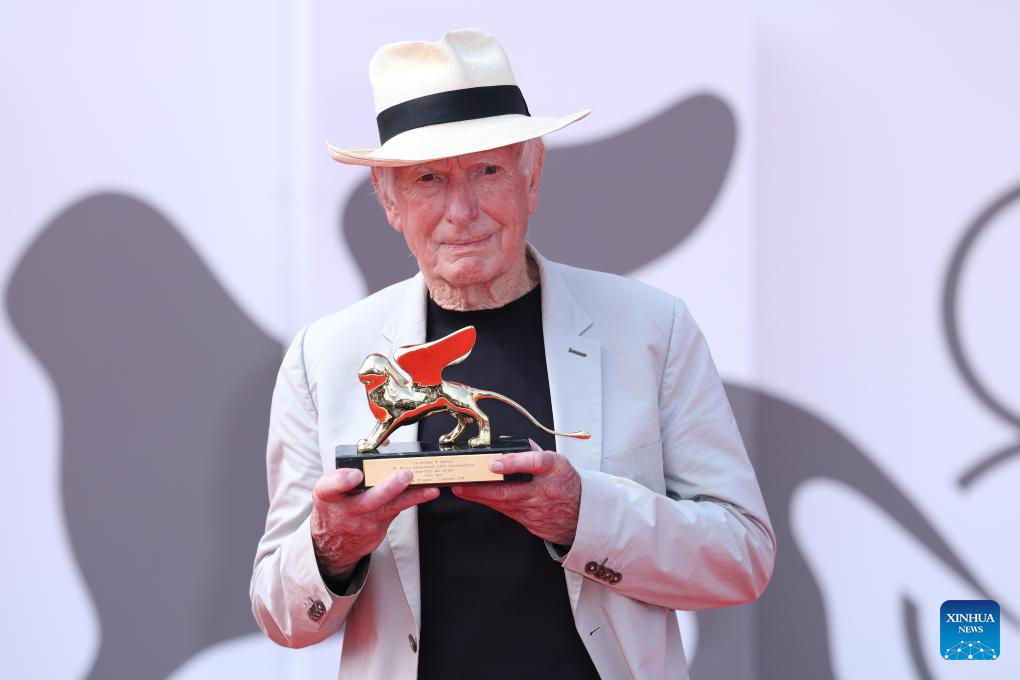 VENECIA, 3 septiembre, 2024 (Xinhua) -- Imagen del 2 de septiembre de 2024 del director australiano, Peter Weir, posando con el trofeo durante el 81 Festival de Cine de Venecia, en Venecia, Italia. Weir fue galardonado con el León de Oro a la Trayectoria del festival de cine el lunes. (Xinhua/Li Jing)