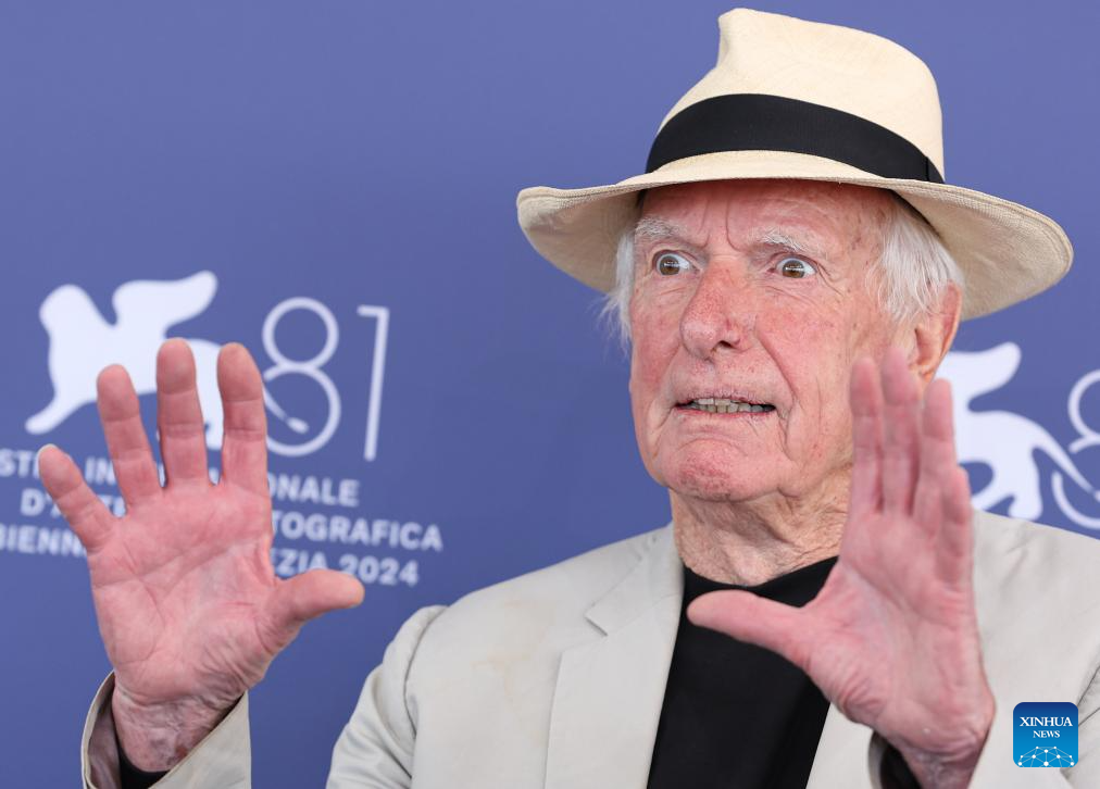 VENECIA, 3 septiembre, 2024 (Xinhua) -- Imagen del 2 de septiembre de 2024 del director australiano, Peter Weir, posando para la sesión fotográfica durante el 81 Festival de Cine de Venecia, en Venecia, Italia. Weir fue galardonado con el León de Oro a la Trayectoria del festival de cine el lunes. (Xinhua/Li Jing)