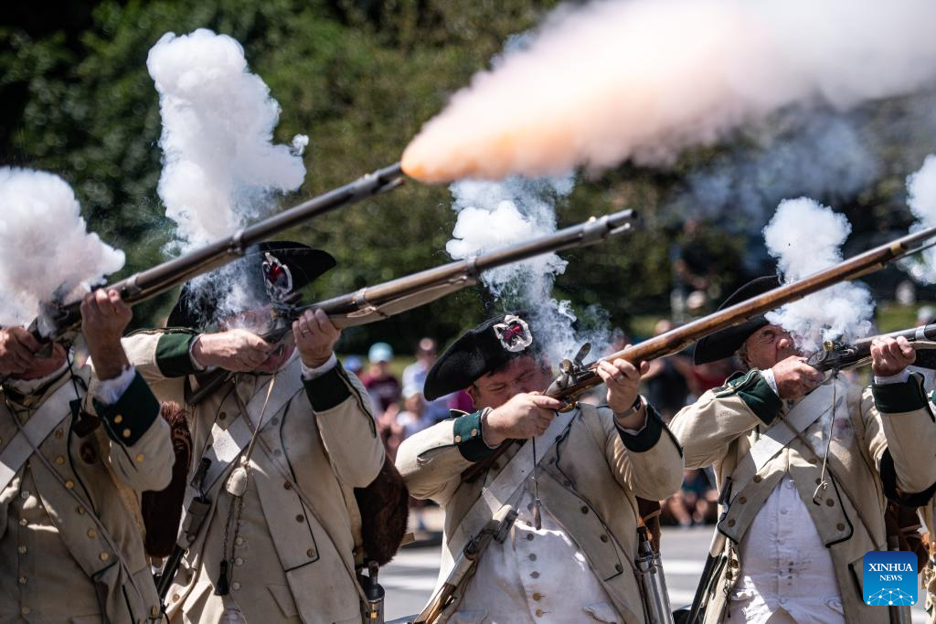 MASSACHUSETTS, 3 septiembre, 2024 (Xinhua) -- Imagen del 2 de septiembre de 2024 de personas participando en un desfile por el Día del Trabajo, en Marlborough, Massachusetts, Estados Unidos. (Xinhua/Ziyu Zhu)