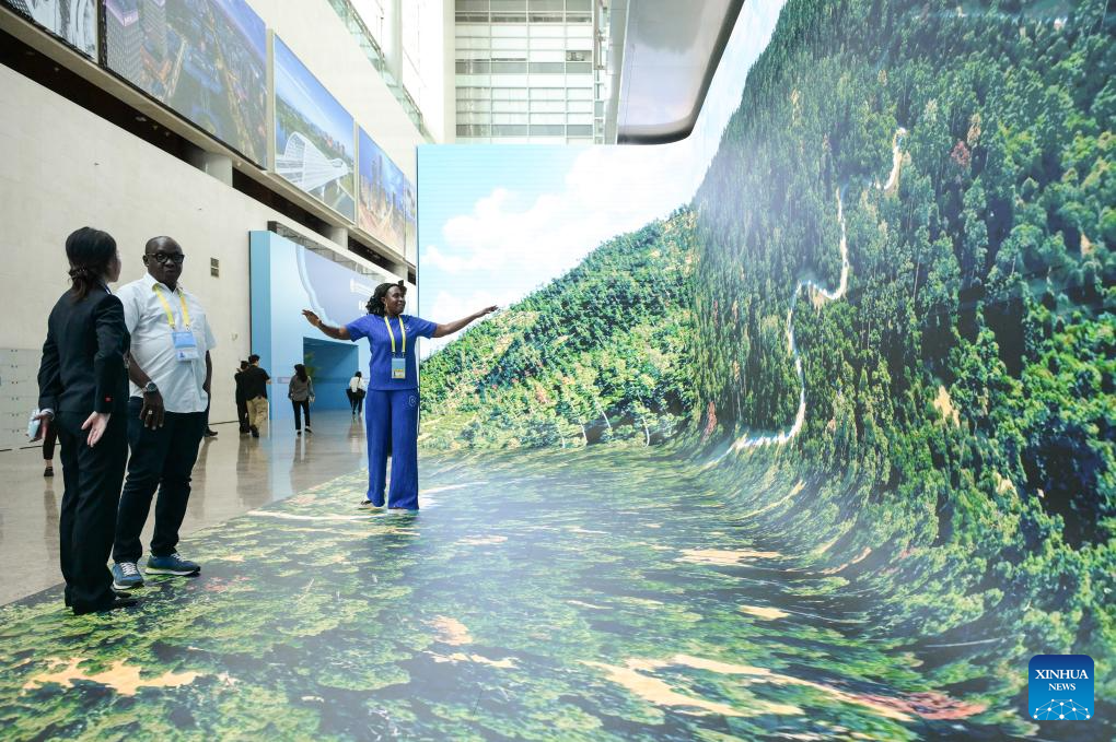 BEIJING, 3 septiembre, 2024 (Xinhua) -- Periodistas africanos visitan un proyecto de experiencia inmersiva en ultra HD en el centro de medios para la Cumbre 2024 del Foro de Cooperación China-África (FOCAC, por sus siglas en inglés), en Beijing, capital de China, el 3 de septiembre de 2024. (Xinhua/Li He)