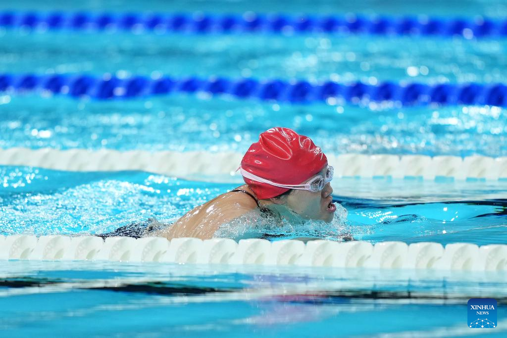 PARIS, 3 septiembre, 2024 (Xinhua) -- Imagen del 2 de septiembre de 2024 de Cheng Jiao de China compitiendo durante la final de 100m braza de SB4 femeninos de para natación en los Juegos Paralímpicos de París 2024, en París, Francia. (Xinhua/Zhang Haofu)