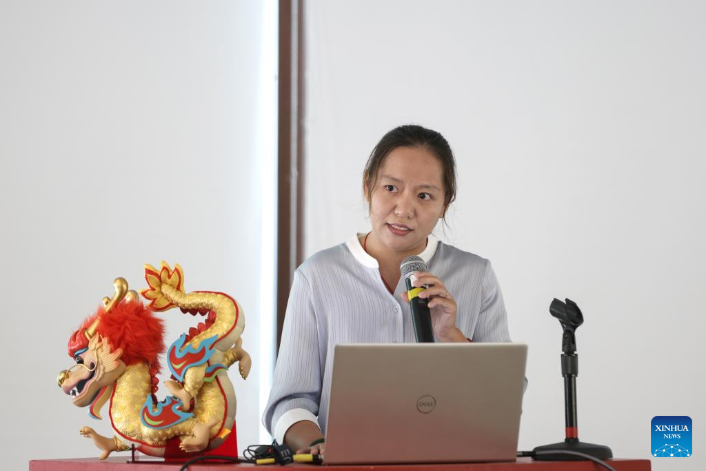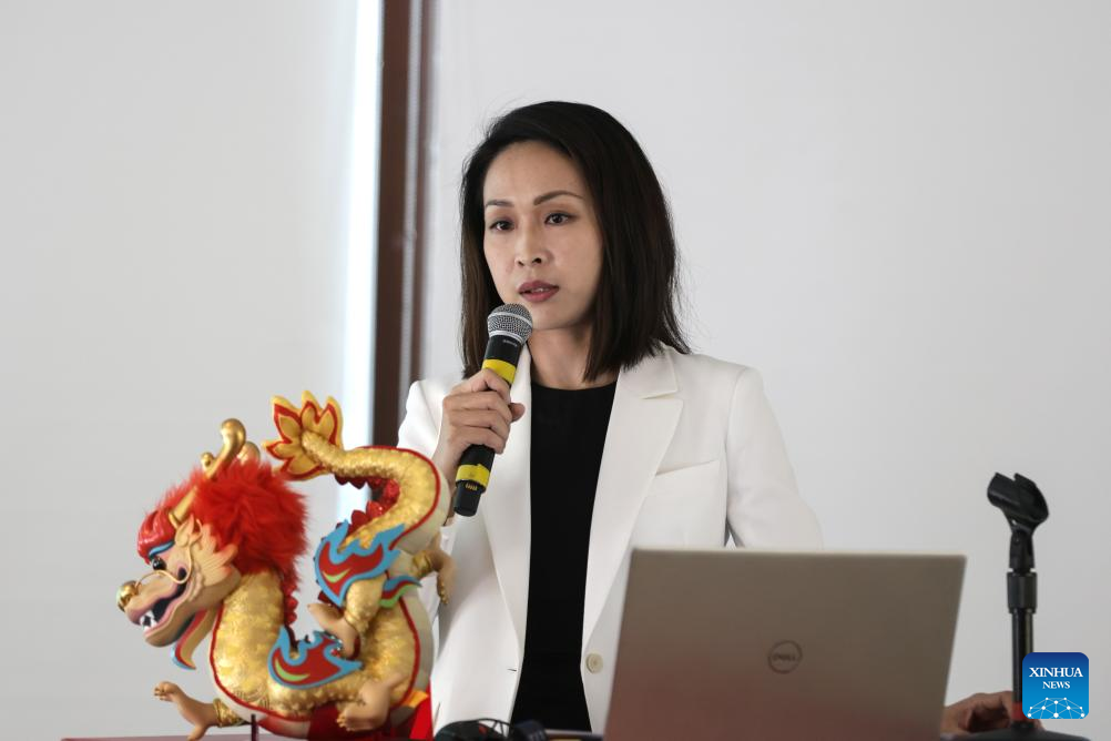 Imagen del 3 de septiembre de 2024 de la jefa de la Sección Consular y de Asuntos de Chinos en el Extranjero de la Embajada de China en México, Gu Xin, hablando durante el seminario "¡Hola! China", en la Ciudad de México, capital de México. Representantes de la industria turística mexicana, funcionarios, medios de comunicación chinos y extranjeros, así como figuras del campo de internet, celebraron el martes con gran éxito el seminario "¡Hola! China", en el que se presentaron las últimas políticas de facilitación del turismo de China al público mexicano, así como a distintos operadores turísticos. (Xinhua/Francisco Cañedo)