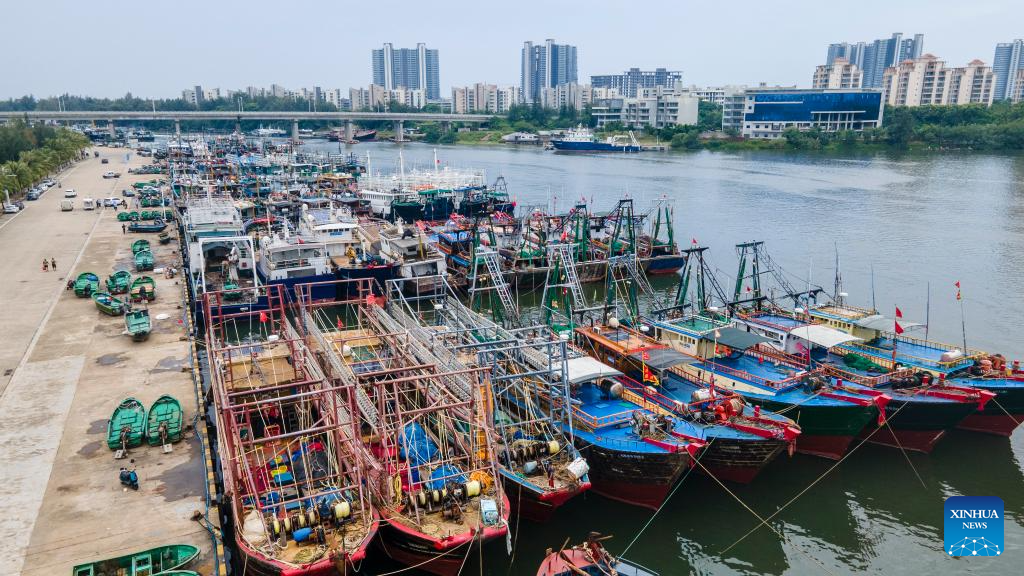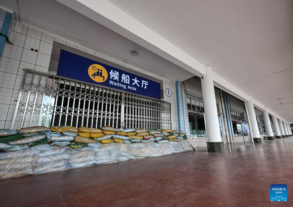 HAIKOU, 5 septiembre, 2024 (Xinhua) -- El Puerto de Xiuying cerrado es visto, en Haikou, en la provincia de Hainan, en el sur de China, el 5 de septiembre de 2024. La Oficina Estatal de Control de Inundaciones y Alivio de Sequías elevó su protocolo de respuesta de emergencia para la prevención de inundaciones y tifones del nivel III al II en las provincias de Guangdong y Hainan a las 15:00 horas del jueves, a medida que se acerca el tifón Yagi. Se espera que Yagi toque tierra el viernes por la tarde o por la noche en algún lugar entre la ciudad de Qionghai, en Hainan y la ciudad de Maoming, en Guangdong. (Xinhua/Pu Xiaoxu)