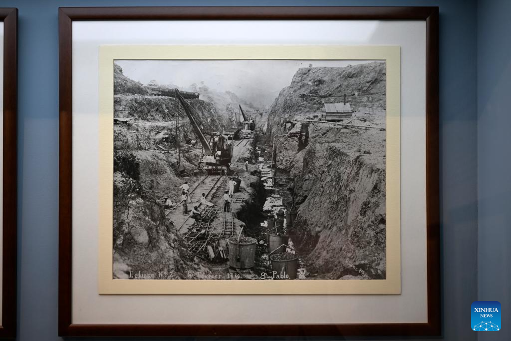 PANAMA, 6 septiembre, 2024 (Xinhua) -- Imagen del 23 de agosto de 2024 de una fotografía exhibida en el museo del Canal de Panamá de la construcción del Canal de Panamá a finales del siglo XIX, en la Ciudad de Panamá, Panamá. El Canal de Panamá, que conecta los océanos Pacífico y Atlántico, tiene una extensión de más de 80 kilómetros y es una de las vías fluviales comerciales más importantes del mundo. El Canal de Panamá fue inaugurado oficialmente el 15 de agosto de 1914. Este año se conmemora el 110 aniversario de su inauguración. (Xinhua/Li Muzi)