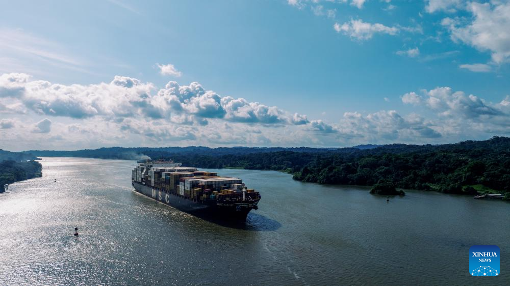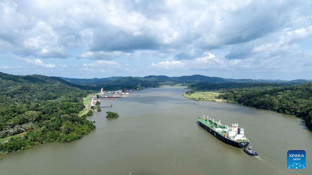 PANAMA, 6 septiembre, 2024 (Xinhua) -- Imagen tomada con un dron del 28 de agosto de 2024 de una embarcación navegando en el Canal de Panamá, cerca de la Ciudad de Panamá, Panamá. El Canal de Panamá, que conecta los océanos Pacífico y Atlántico, tiene una extensión de más de 80 kilómetros y es una de las vías fluviales comerciales más importantes del mundo. El Canal de Panamá fue inaugurado oficialmente el 15 de agosto de 1914. Este año se conmemora el 110 aniversario de su inauguración. (Xinhua/Li Muzi)