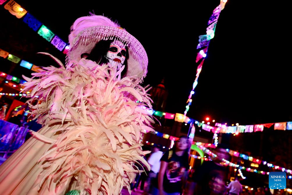 LOS ANGELES, 6 septiembre, 2024 (Xinhua) -- Imagen del 5 de septiembre de 2024 de una trabajadora portando un disfraz de Halloween vista durante la noche de apertura de las Noches de Terror de Halloween 2024 en Universal Studios Hollywood, en Los Angeles, California, Estados Unidos. Universal Studios Hollywood en Los Angeles comenzó el jueves sus Noches de Terror de Halloween, un evento anual temático de Halloween. (Xinhua/Qiu Chen)