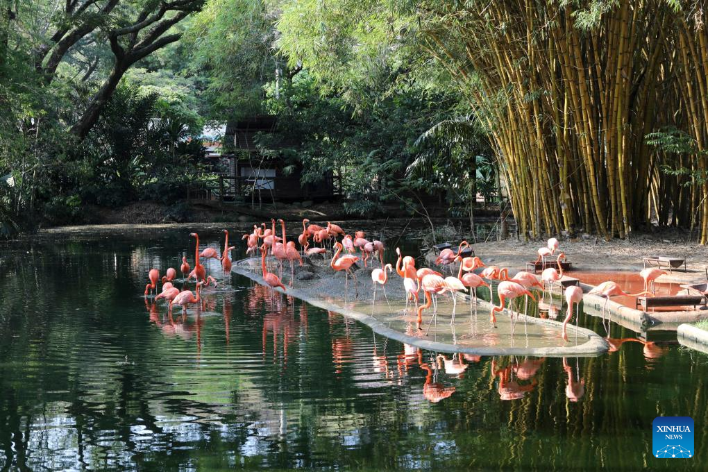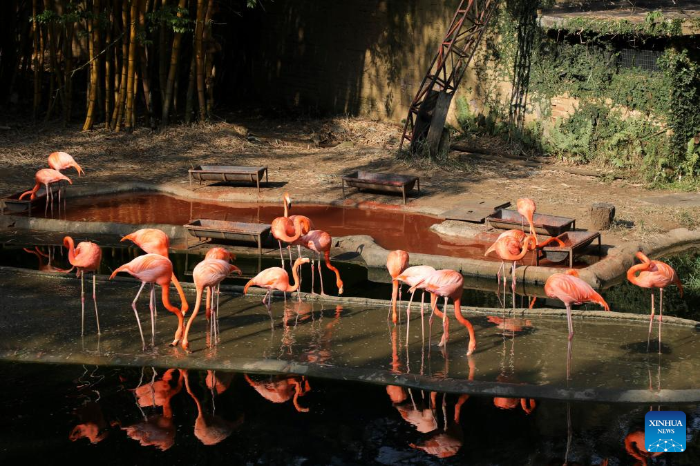 CALI, 6 septiembre, 2024 (Xinhua) -- Imagen del 4 de septiembre de 2024 de flamencos vistos en el Zooológico de Cali, en Cali, Colombia. (Xinhua/Zhou Shengping)
