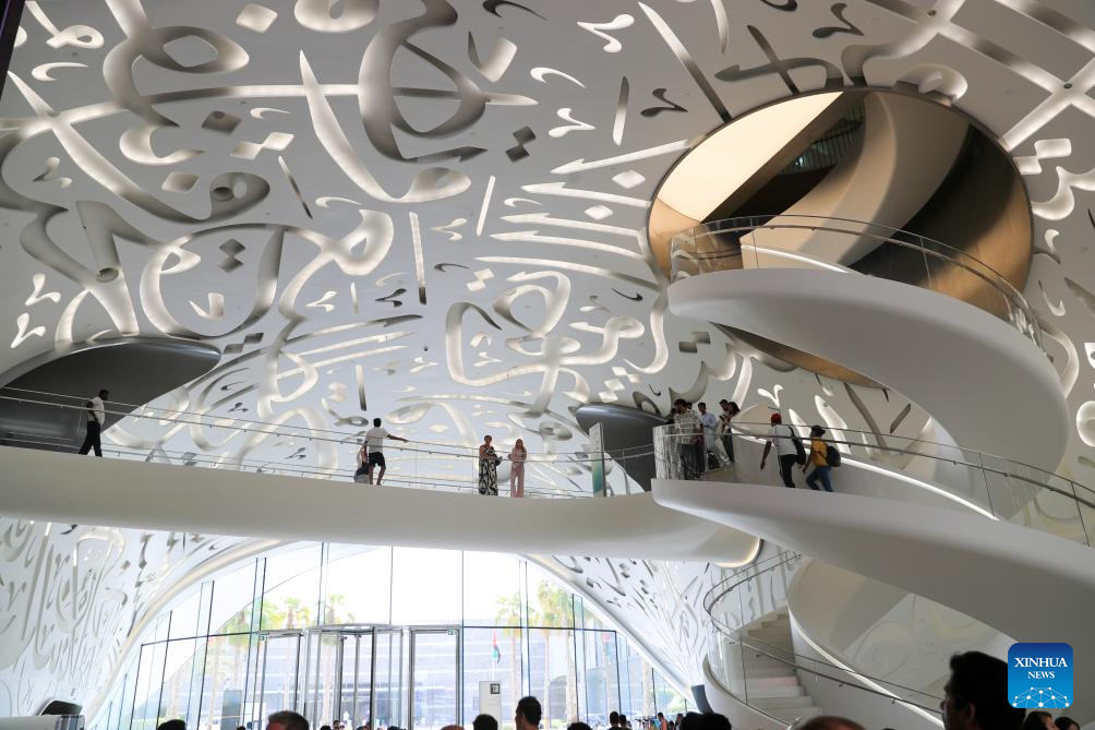 DUBAI, 6 septiembre, 2024 (Xinhua) -- Imagen del 1 de septiembre de 2024 de personas visitando el Museo del Futuro, en Dubai, Emiratos Arabes Unidos. (Xinhua/Sui Xiankai)