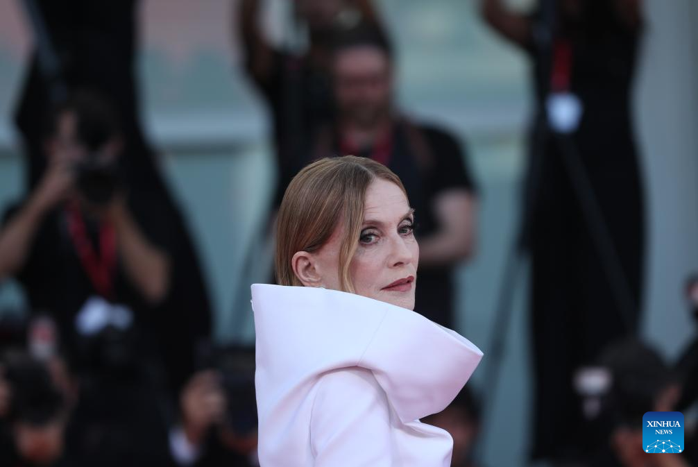 VENECIA, 8 septiembre, 2024 (Xinhua) -- Imagen del 7 de septiembre de 2024 de la actriz francesa Isabelle Huppert, presidenta del jurado del 81° Festival de Cine de Venecia, posando en la alfombra roja previo a la ceremonia de premiación del festival de cine, en Venecia, Italia. El 81° Festival de Cine de Venecia se clausuró aquí el sábado. (Xinhua/Li Jing)