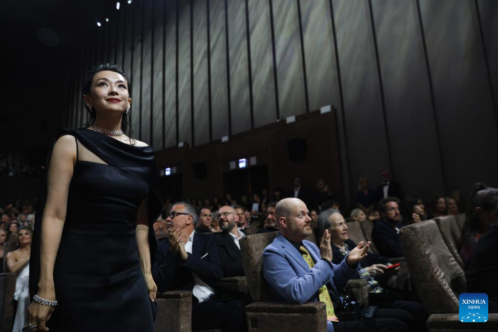 VENECIA, 8 septiembre, 2024 (Xinhua) -- Imagen del 7 de septiembre de 2024 de la actriz china, Zhang Ziyi (i), miembro del jurado del 81° Festival de Cine de Venecia, asistiendo a la ceremonia de premiación del festival de cine, en Venecia, Italia. El 81° Festival de Cine de Venecia se clausuró aquí el sábado. (Xinhua/Li Jing)