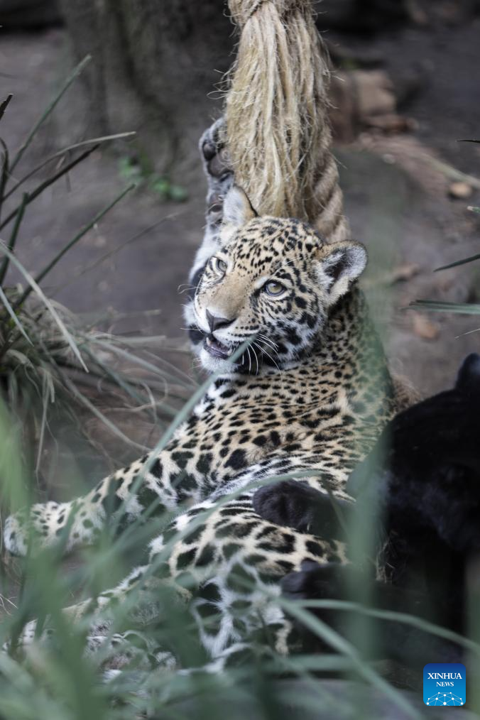 CIUDAD DE MEXICO, 9 septiembre, 2024 (Xinhua) -- Un cachorro de jaguar descansa en el Centro de Conservación de Vida Silvestre de Chapultepec, en la Ciudad de México, capital de México, el 9 de septiembre de 2024. (Xinhua/Francisco Cañedo)