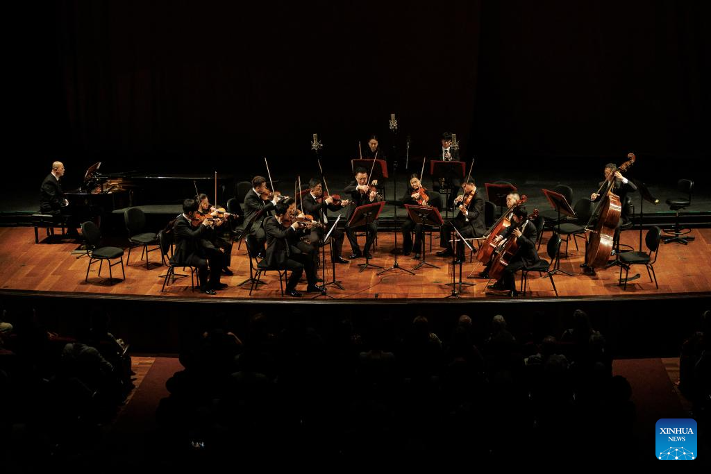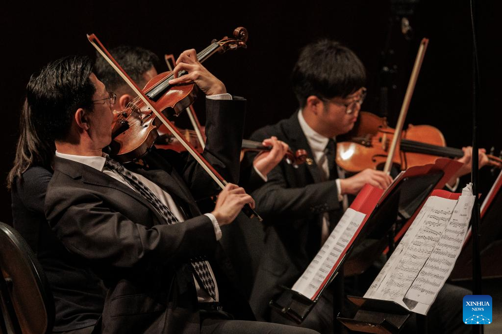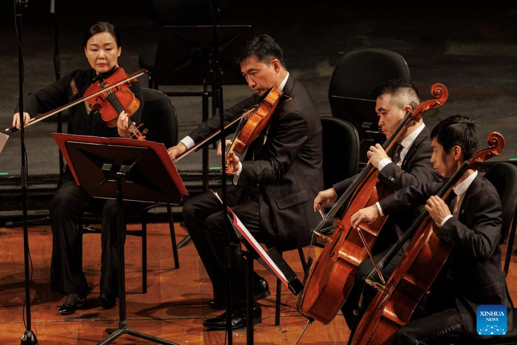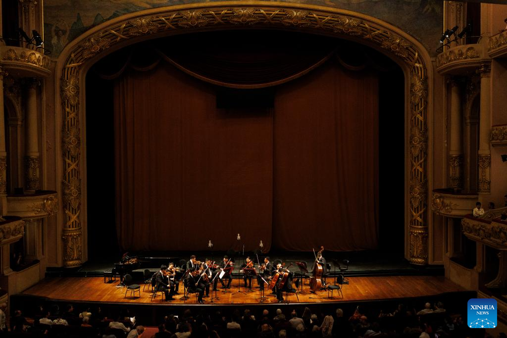 RIO DE JANEIRO, 10 septiembre, 2024 (Xinhua) -- Imagen del 9 de septiembre de 2024 de miembros de la Orquesta Sinfónica Nacional de China realizando una presentación en el Teatro Municipal, en Río de Janeiro, Brasil. (Xinhua/Claudia Martini)