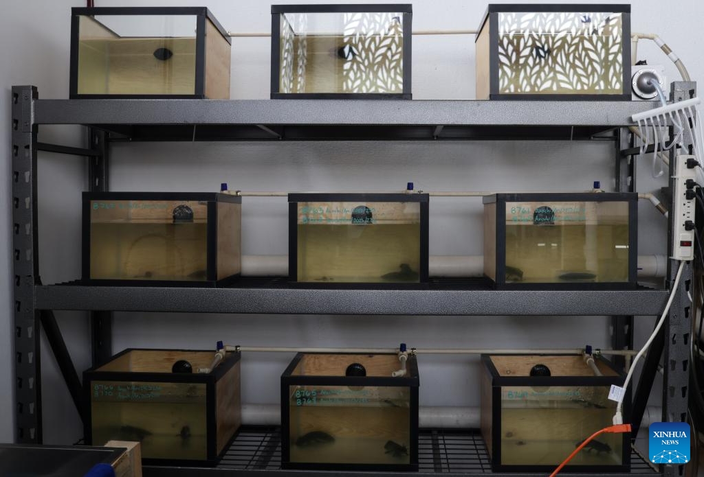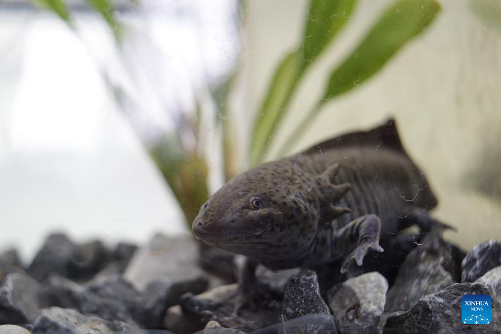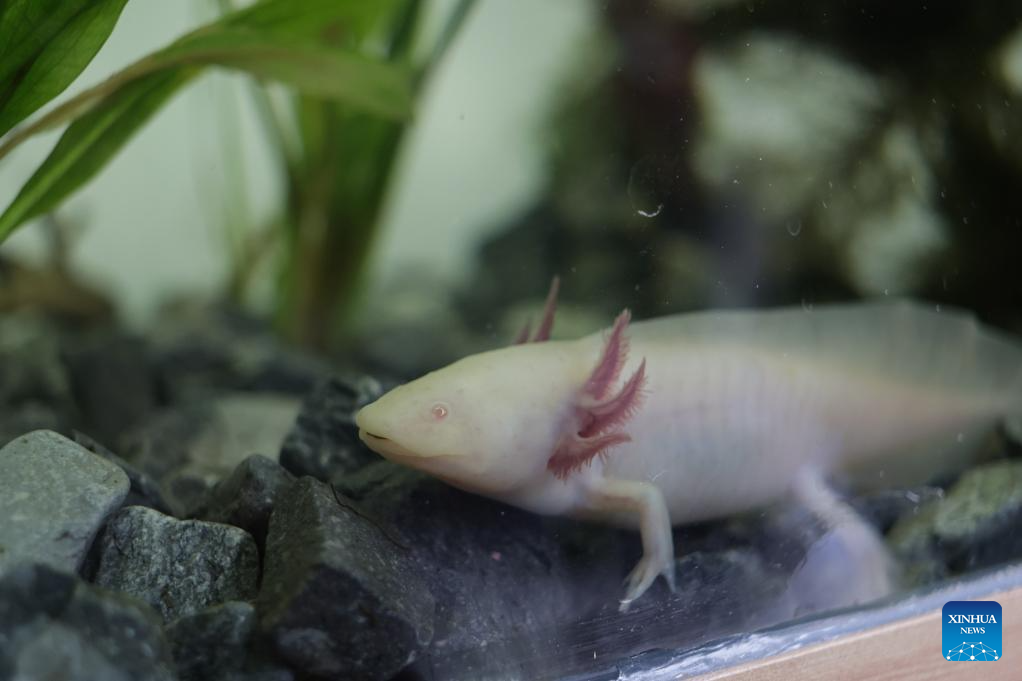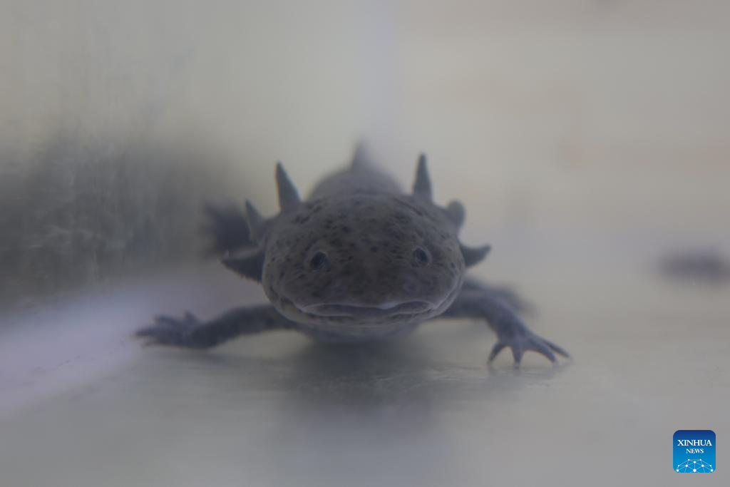 CIUDAD DE MEXICO, 10 septiembre, 2024 (Xinhua) -- Ajolotes son vistos en peceras durante la inauguración del Recinto de Animales Acuáticos Anemitilkalli del Laboratorio de Especies Acuáticas Acuícolas perteneciente al Centro para la Preservación de la Biodiversidad de la Ciudad de México, en la Ciudad de México, capital de México, el 10 de septiembre de 2024. (Xinhua/Francisco Cañedo)