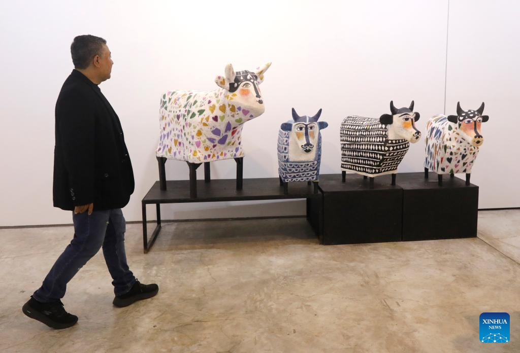 LIMA, 11 septiembre, 2024 (Xinhua) -- Un visitante recorre la exposición "Abalorios" del artista peruano Federico Bauer en la Galería Forum, en el distrito de Miraflores, en Lima, Perú, el 11 de septiembre de 2024. (Xinhua/Mariana Bazo)