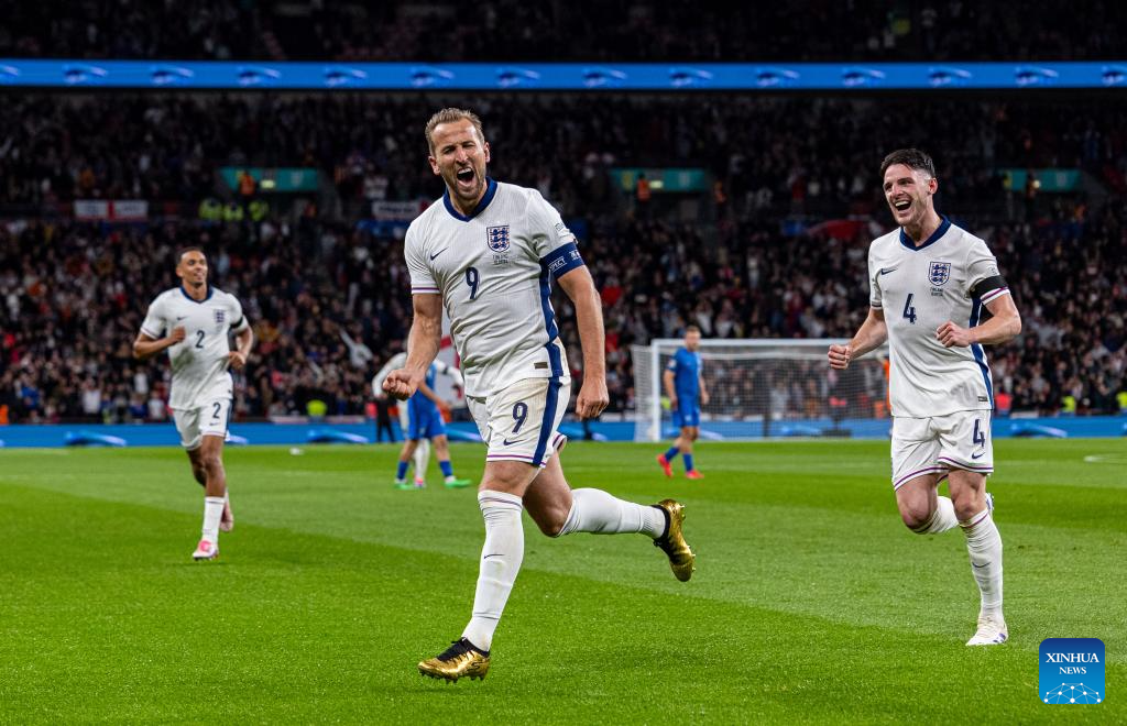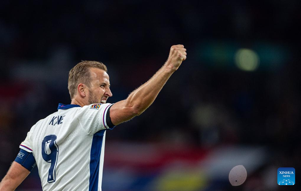 LONDRES, 11 septiembre, 2024 (Xinhua) -- Imagen del 10 de septiembre de 2024 de Harry Kane, de Inglaterra, festejando su segundo gol durante el partido del Grupo B2 de la Liga de las Naciones de la UEFA entre Inglaterra y Finlandia, en Londres, Reino Unido. (Xinhua)