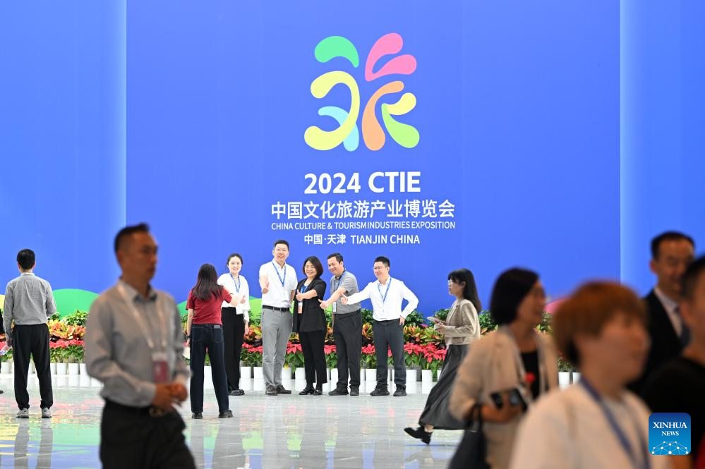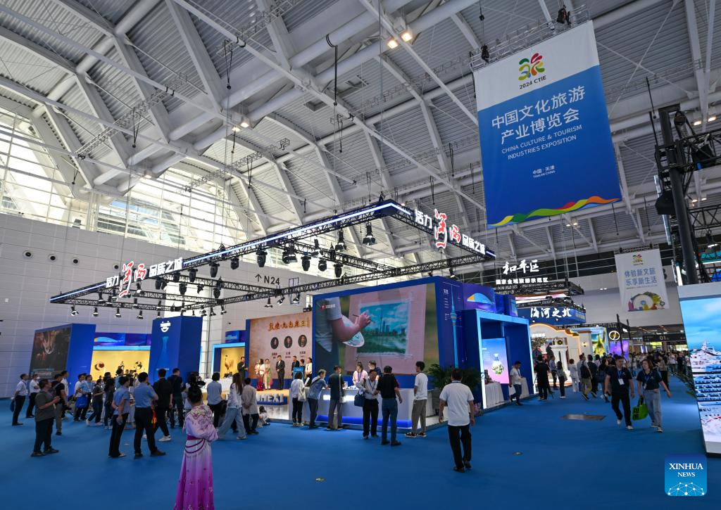TIANJIN, 13 septiembre, 2024 (Xinhua) -- La Exposición de Industrias Culturales y Turísticas de China 2024 se lleva a cabo, en Tianjin, en el norte de China, el 13 de septiembre de 2024. La exposición de cuatro días de duración se inauguró aquí el viernes. Más de 2.000 empresas culturales y turísticas están participando, con espacios de experiencia inmersiva mostrando equipamientos para turismo inteligente y para actividades al aire libre, los logros en la integración profunda de la cultura y el turismo, así como el desarrollo de productos y servicios culturales innovadores. (Xinhua/Sun Fanyue)