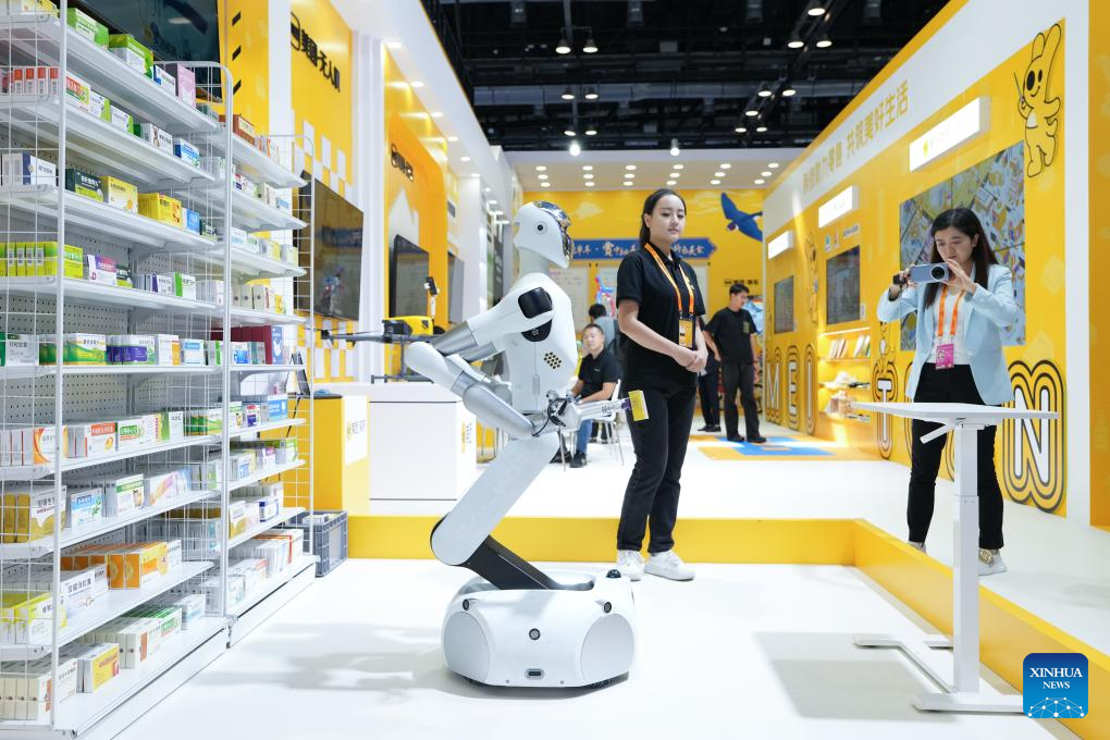 BEIJING, 13 septiembre, 2024 (Xinhua) -- Un robot es visto durante la Feria Internacional de Comercio de Servicios de China 2024 (CIFTIS, por sus siglas en inglés), en el Centro Nacional de Convenciones de China, en Beijing, capital de China, el 13 de septiembre de 2024. Bajo el lema "Servicios globales, prosperidad compartida", la CIFTIS 2024 se celebra en el Centro Nacional de Convenciones de China y el parque Shougang en Beijing del 12 al 16 de septiembre. (Xinhua/Ding Hongfa)