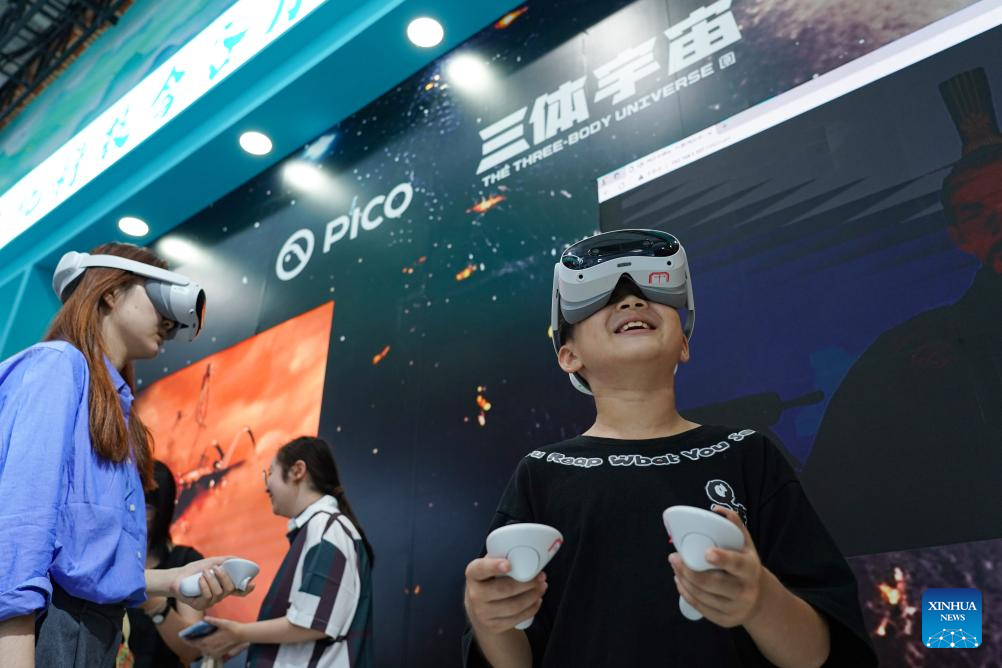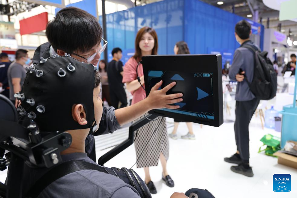 BEIJING, 13 septiembre, 2024 (Xinhua) -- Una visitante prueba tecnologías de XR (realidad extendida) durante la Feria Internacional de Comercio de Servicios de China 2024 (CIFTIS, por sus siglas en inglés), en el parque Shougang, en Beijing, capital de China, el 13 de septiembre de 2024. Bajo el lema "Servicios globales, prosperidad compartida", la CIFTIS 2024 se celebra en el Centro Nacional de Convenciones de China y el parque Shougang en Beijing del 12 al 16 de septiembre. (Xinhua/Chen Zhonghao)