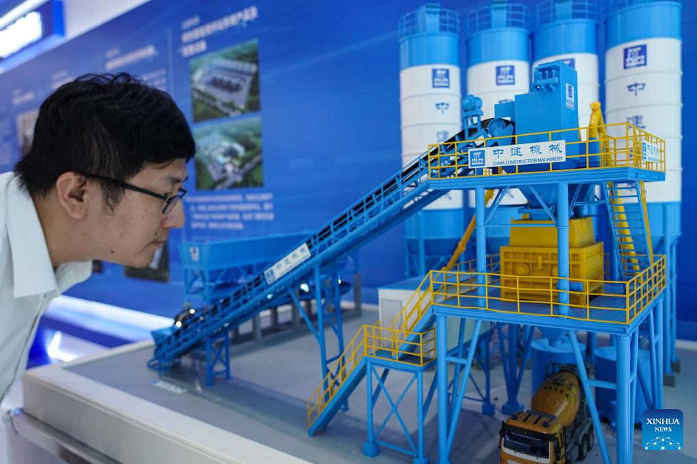 BEIJING, 13 septiembre, 2024 (Xinhua) -- Un hombre observa un modelo de estación mezcladora de cemento propulsada por IA exhibida durante la Feria Internacional de Comercio de Servicios de China 2024 (CIFTIS, por sus siglas en inglés), en el parque Shougang, en Beijing, capital de China, el 13 de septiembre de 2024. Bajo el lema "Servicios globales, prosperidad compartida", la CIFTIS 2024 se celebra en el Centro Nacional de Convenciones de China y el parque Shougang en Beijing del 12 al 16 de septiembre. (Xinhua/Chen Zhonghao)