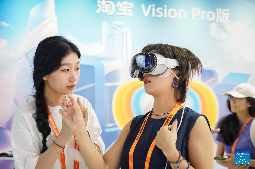 BEIJING, 13 septiembre, 2024 (Xinhua) -- Visitantes experimentan dispositivos de RM (realidad mixta) durante la Feria Internacional de Comercio de Servicios de China 2024 (CIFTIS, por sus siglas en inglés), en el parque Shougang, en Beijing, capital de China, el 13 de septiembre de 2024. Bajo el lema "Servicios globales, prosperidad compartida", la CIFTIS 2024 se celebra en el Centro Nacional de Convenciones de China y el parque Shougang en Beijing del 12 al 16 de septiembre. (Xinhua/Chen Zhonghao)