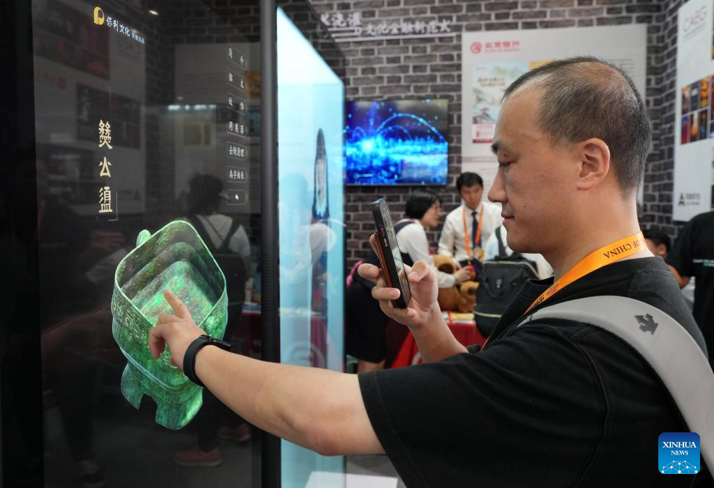 BEIJING, 13 septiembre, 2024 (Xinhua) -- Un visitante interactúa con una pantalla holográfica digital durante la Feria Internacional de Comercio de Servicios de China 2024 (CIFTIS, por sus siglas en inglés), en el parque Shougang, en Beijing, capital de China, el 13 de septiembre de 2024. Bajo el lema "Servicios globales, prosperidad compartida", la CIFTIS 2024 se celebra en el Centro Nacional de Convenciones de China y el parque Shougang en Beijing del 12 al 16 de septiembre. (Xinhua/Chen Yehua)