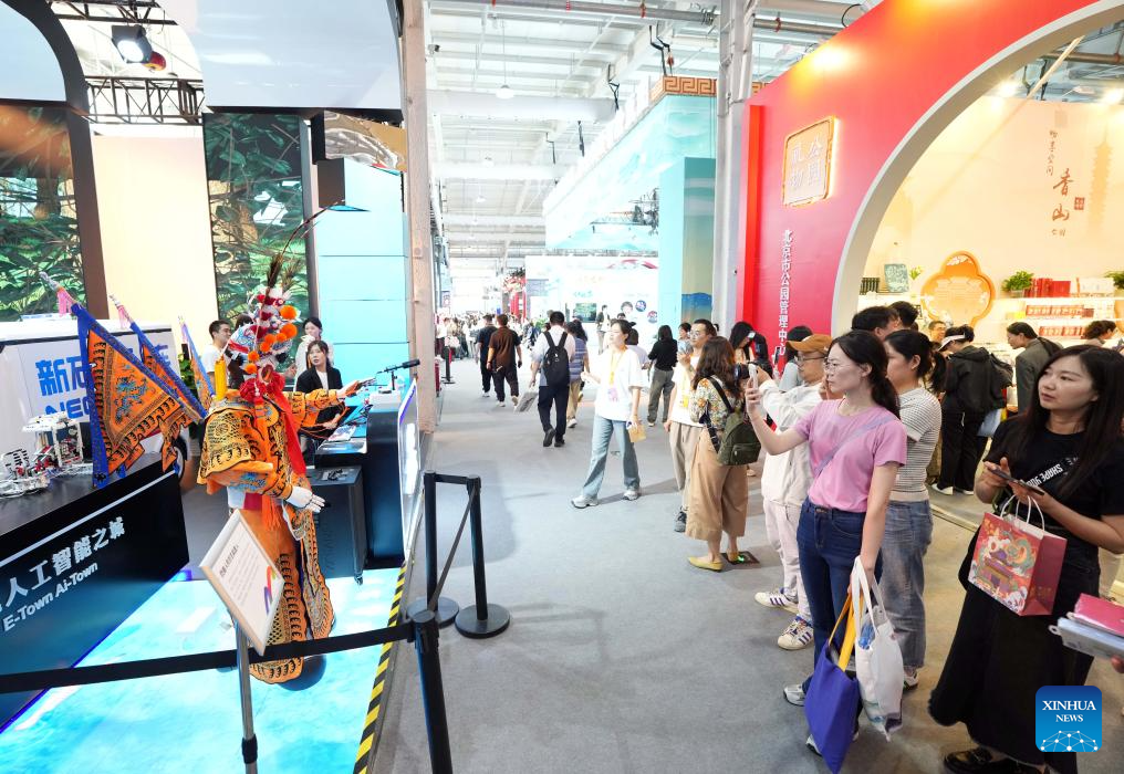 BEIJING, 13 septiembre, 2024 (Xinhua) -- Personas visitan el parque Shougang, una sede de la Feria Internacional de Comercio de Servicios de China 2024 (CIFTIS, por sus siglas en inglés), en Beijing, capital de China, el 13 de septiembre de 2024. Bajo el lema "Servicios globales, prosperidad compartida", la CIFTIS 2024 se celebra en el Centro Nacional de Convenciones de China y el parque Shougang en Beijing del 12 al 16 de septiembre. (Xinhua/Chen Yehua)
