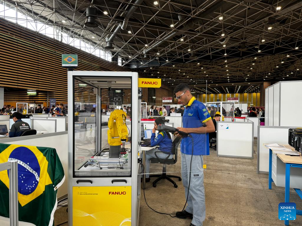 LYON, 13 septiembre, 2024 (Xinhua) -- Imagen del 12 de septiembre de 2024 de concursantes compitiendo en un concurso de integración de sistemas robóticos durante el 47 Campeonato Mundial de Formación Profesional Worldskills (WSC, por sus siglas en inglés), en Lyon, Francia. El 47 WSC comenzó oficialmente el martes por la noche con una ceremonia de inauguración en la LDLC Arena ubicado cerca de la ciudad de Lyon en Francia. Anteriormente conocida como la Organización Internacional de Formación Profesional, WorldSkills es una organización benéfica internacional, que organiza campeonatos nacionales de formación profesional. Cada dos años, la organización alberga una competencia, que atrae a competidores de todo el mundo. La competencia de este año está programada para realizarse del 11 al 14 de septiembre, con la ceremonia de clausura el 15 de septiembre. El evento reunirá a aproximadamente 1.400 participantes de casi 70 países y regiones, que competirán en 59 categorías de destrezas. (Xinhua/Luo Yu)