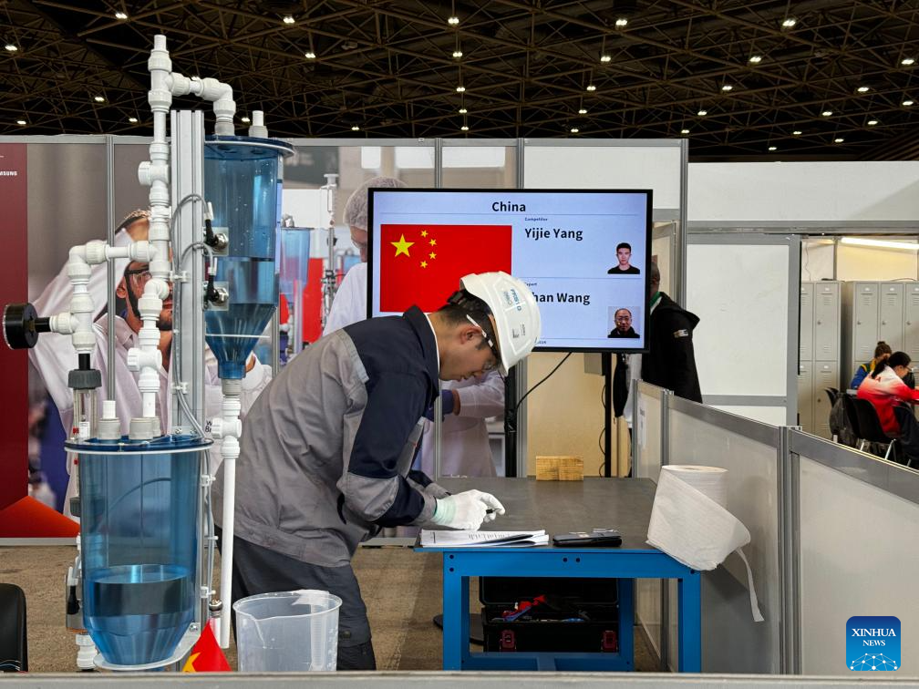 LYON, 13 septiembre, 2024 (Xinhua) -- Imagen del 12 de septiembre de 2024 de un participante compitiendo en un concurso de tecnología del agua durante el 47 Campeonato Mundial de Formación Profesional Worldskills (WSC, por sus siglas en inglés), en Lyon, Francia. El 47 WSC comenzó oficialmente el martes por la noche con una ceremonia de inauguración en el LDLC Arena ubicado cerca de la ciudad de Lyon en Francia. Anteriormente conocida como la Organización Internacional de Formación Profesional, WorldSkills es una organización benéfica internacional, que organiza campeonatos nacionales de formación profesional. Cada dos años, la organización alberga una competencia, que atrae a competidores de todo el mundo. La competencia de este año está programada para realizarse del 11 al 14 de septiembre, con la ceremonia de clausura el 15 de septiembre. El evento reunirá a aproximadamente 1.400 participantes de casi 70 países y regiones, que competirán en 59 categorías de destrezas. (Xinhua/Luo Yu)
