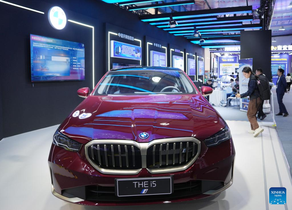 SHENYANG, 13 septiembre, 2024 (Xinhua) -- Imagen del 12 de septiembre de 2024 un automóvil eléctrico i5 de BMW producido por BMW Brilliance Automotive (BBA, por sus siglas en inglés) exhibido en una exposición de logros de innovación de la Conferencia Global de Internet Industrial 2024, en Shenyang, en la provincia de Liaoning, en el noreste de China. La Conferencia Global de Internet Industrial 2024 comenzó aquí el jueves. (Xinhua/Zhang Lei)
