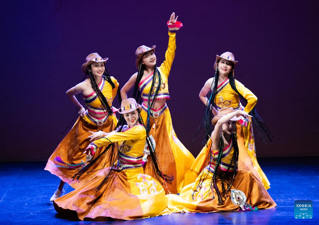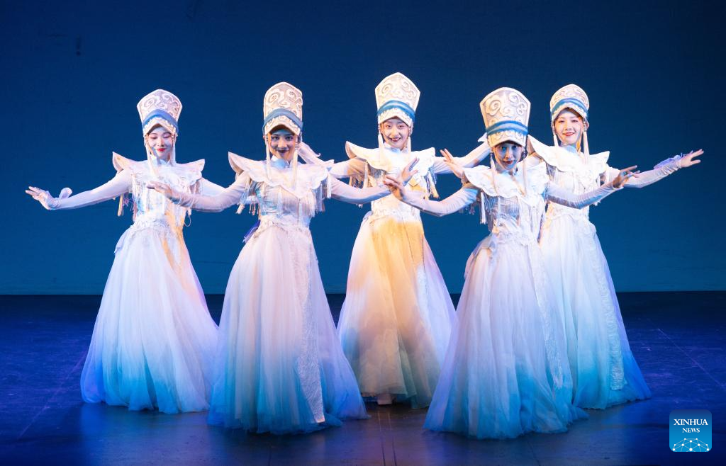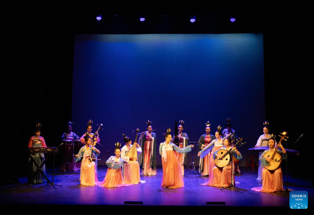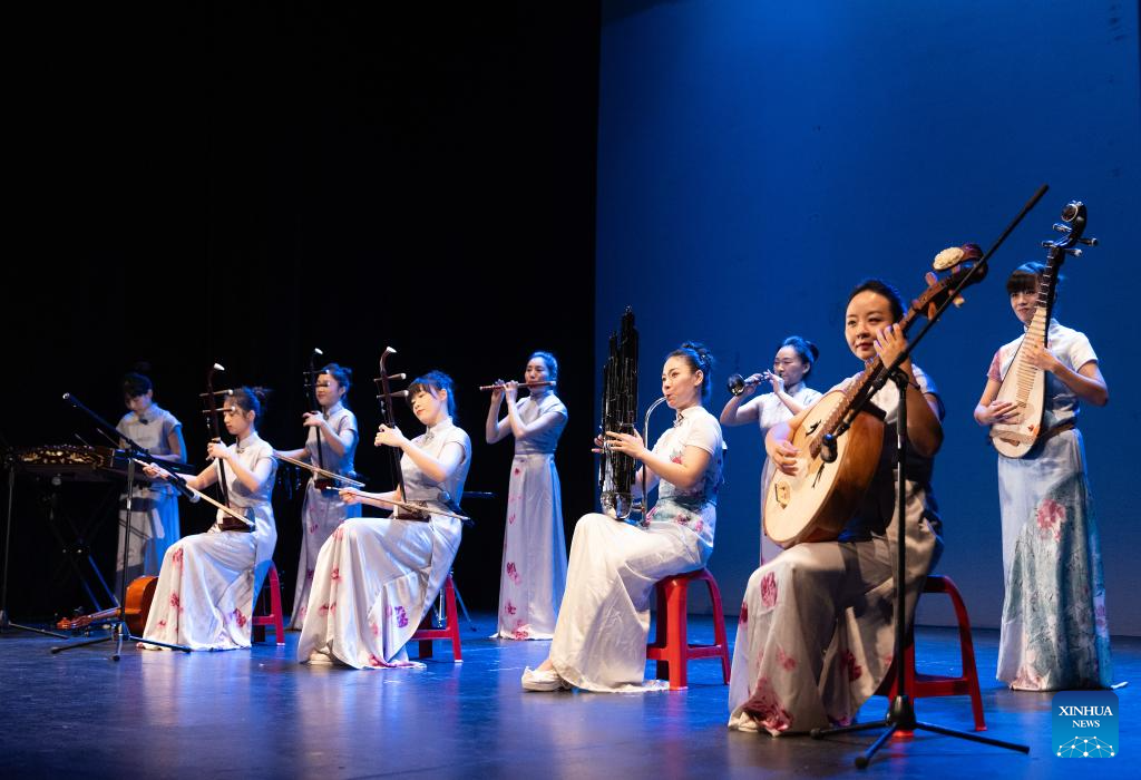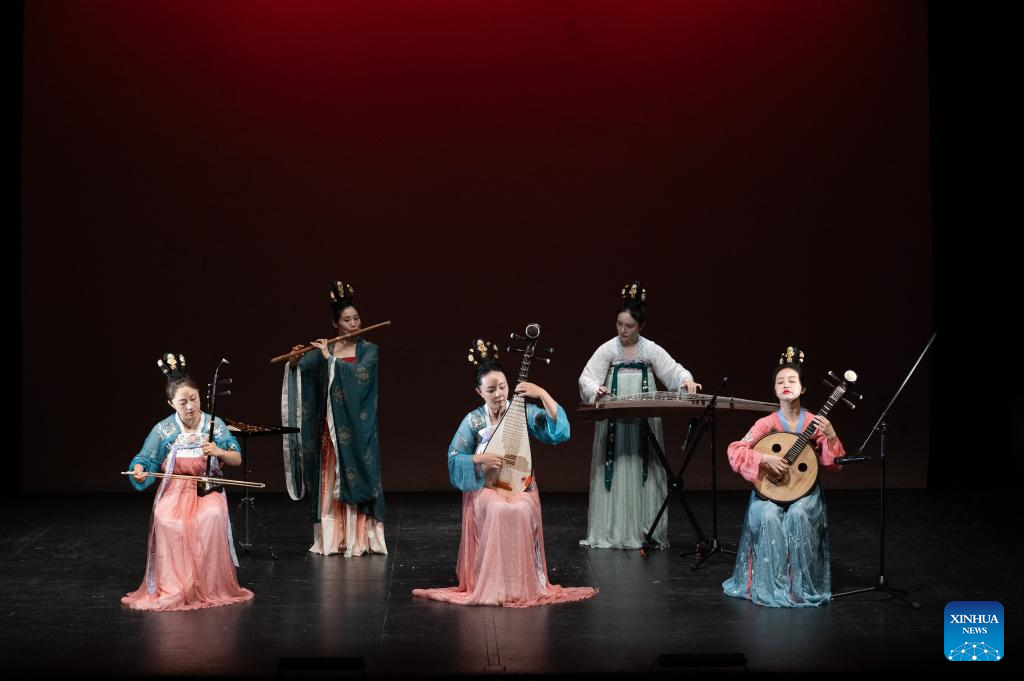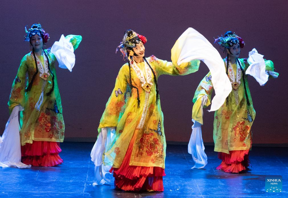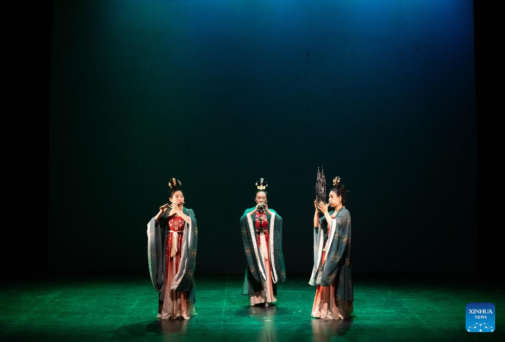CIUDAD DE MEXICO, 14 septiembre, 2024 (Xinhua) -- Imagen del 12 de septiembre de 2024 de actrices realizando una presentación en un evento de celebración, denominado "Oda a la Luna", en la Ciudad de México, capital de México. La celebración, organizada por el Centro Cultural de China en la Ciudad de México y el Departamento Provincial de Cultura y Turismo de Sichuan, se realizó del 11 al 13 de septiembre, durante la cual la Orquesta Sinfónica de Sichuan y el Teatro de Opera y Danza de la Provincia de Sichuan realizaron maravillosas presentaciones. (Xinhua/Li Mengxin)