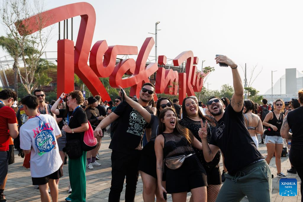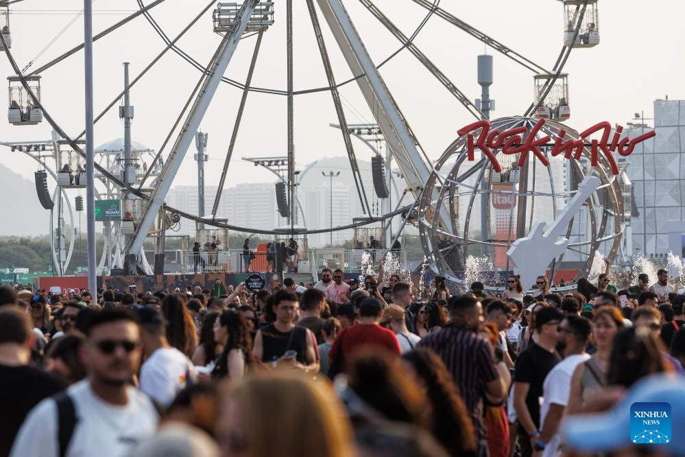 RIO DE JANEIRO, 14 septiembre, 2024 (Xinhua) -- Personas asisten al festival de música Rock in Rio 2024, en Río de Janeiro, Brasil, el 14 de septiembre de 2024. (Xinhua/Claudia Martini)