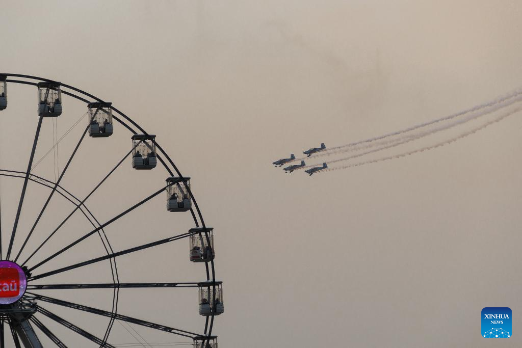 RIO DE JANEIRO, 14 septiembre, 2024 (Xinhua) -- El Escuadrón Céu se presenta en el cielo durante el festival de música Rock in Rio 2024, en Río de Janeiro, Brasil, el 14 de septiembre de 2024. (Xinhua/Claudia Martini)