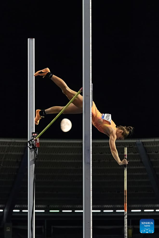 BRUSELAS, 15 septiembre, 2024 (Xinhua) -- Imagen del 14 de septiembre de 2024 de Nina Kennedy, de Australia, compitiendo durante la final de salto con pértiga femenino en la Reunión de Bruselas de la Liga de Diamante 2024, en Bruselas, Bélgica. (Xinhua/Meng Dingbo)