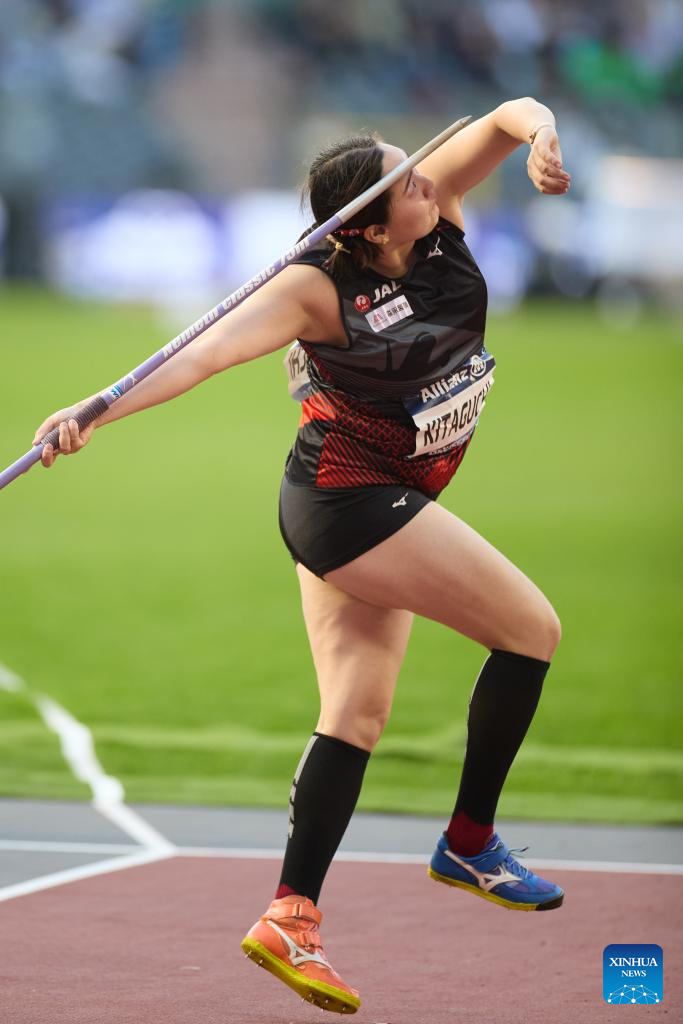 BRUSELAS, 15 septiembre, 2024 (Xinhua) -- Imagen del 14 de septiembre de 2024 de Kitaguchi Haruka, de Japón, compitiendo durante la final de lanzamiento de jabalina femenino en la Reunión de Bruselas de la Liga de Diamante 2024, en Bruselas, Bélgica. (Xinhua/Meng Dingbo)