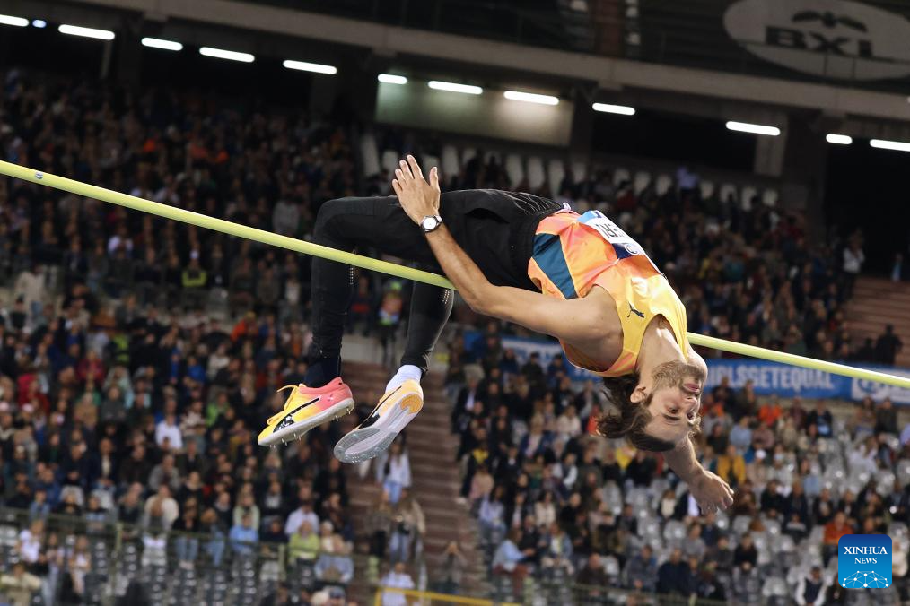 BRUSELAS, 15 septiembre, 2024 (Xinhua) -- Imagen del 14 de septiembre de 2024 de Gianmarco Tamberi, de Italia, compitiendo durante la final de salto de altura masculino en la Reunión de Bruselas de la Liga de Diamante 2024, en Bruselas, Bélgica. (Xinhua/Zhao Dingzhe)