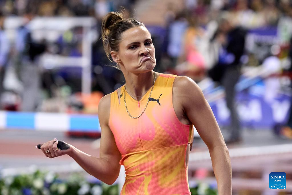 BRUSELAS, 15 septiembre, 2024 (Xinhua) -- Imagen del 14 de septiembre de 2024 de Nina Kennedy, de Australia, reaccionando durante la final de salto con pértiga femenino en la Reunión de Bruselas de la Liga de Diamante 2024, en Bruselas, Bélgica. (Xinhua/Meng Dingbo)
