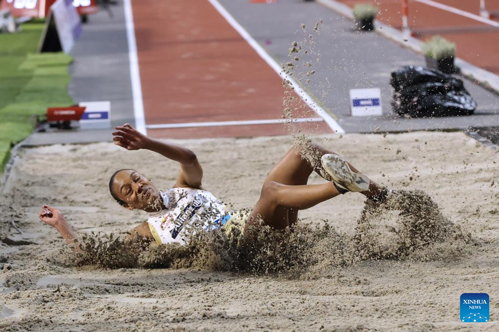 BRUSELAS, 15 septiembre, 2024 (Xinhua) -- Imagen del 14 de septiembre de 2024 de Larissa Iapichino, de Italia, compitiendo durante la final de salto de longitud femenino en la Reunión de Bruselas de la Liga de Diamante 2024, en Bruselas, Bélgica. (Xinhua/Zhao Dingzhe)