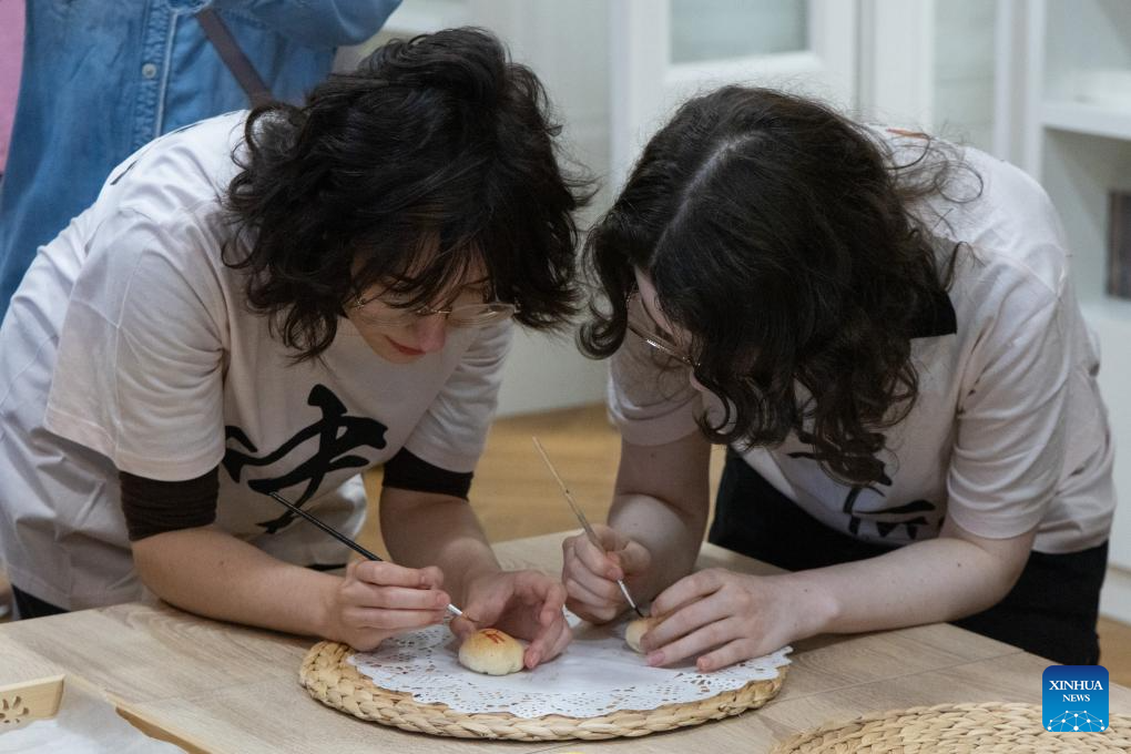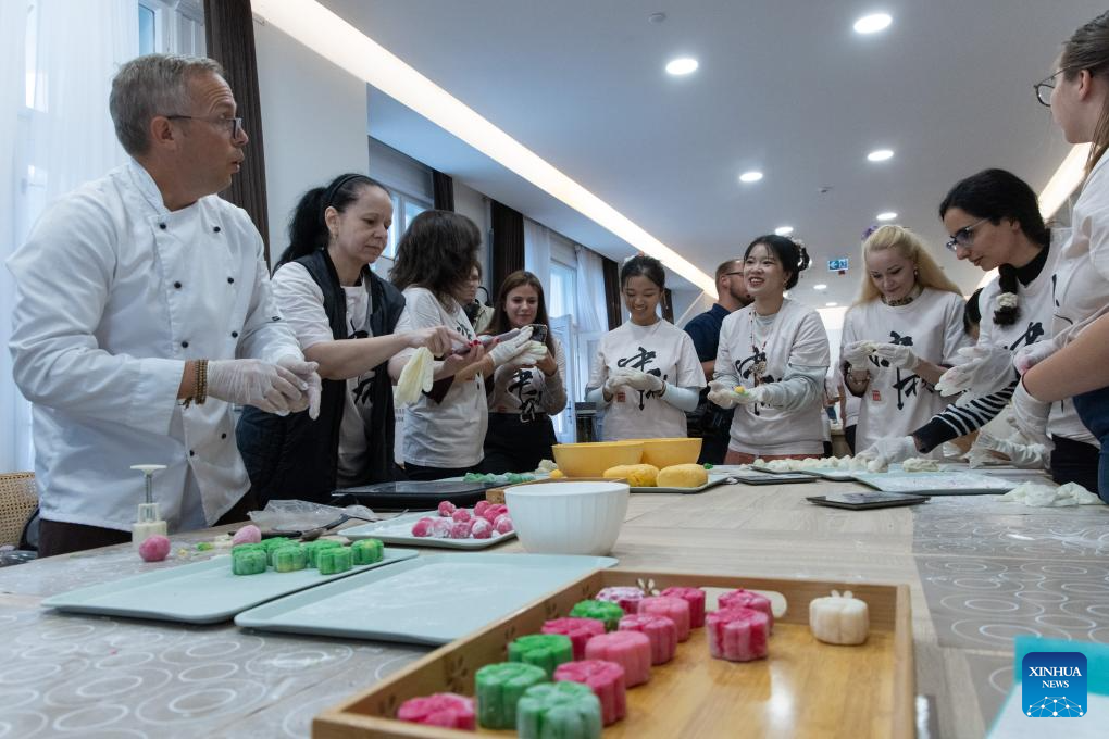 BUDAPEST, 15 septiembre, 2024 (Xinhua) -- Imagen el 14 de septiembre de 2024 de participantes elaborando pasteles de luna durante un taller en celebración del Festival de Medio Otoño en el Centro Cultural de China, en Budapest, Hungría. (Xinhua/Attila Volgyi)