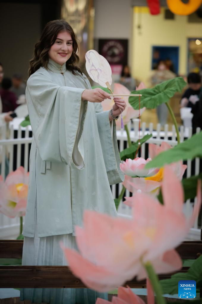 RICHMOND, 15 septiembre, 2024 (Xinhua) -- Imagen del 14 de septiembre de 2024 de una mujer posando para fotografías con linternas durante un evento de celebración del Festival de Medio Otoño chino en el Centro Lansdowne, en Richmond, Columbia Británica, Canadá. (Xinhua/Liang Sen)