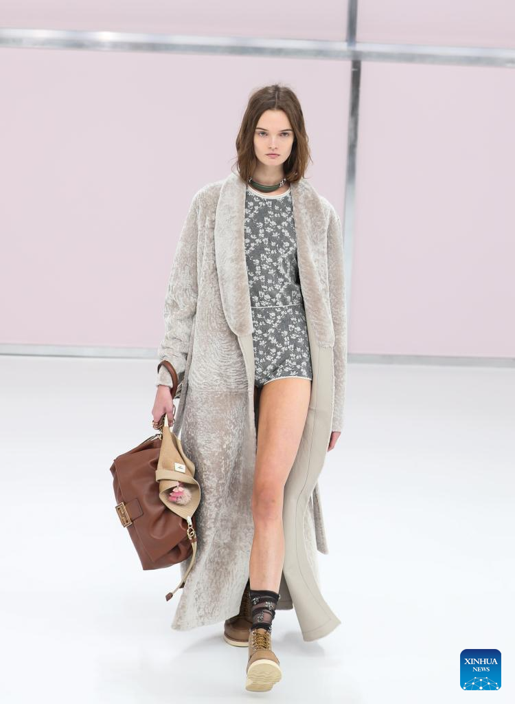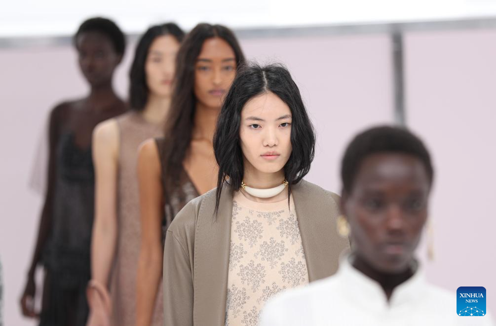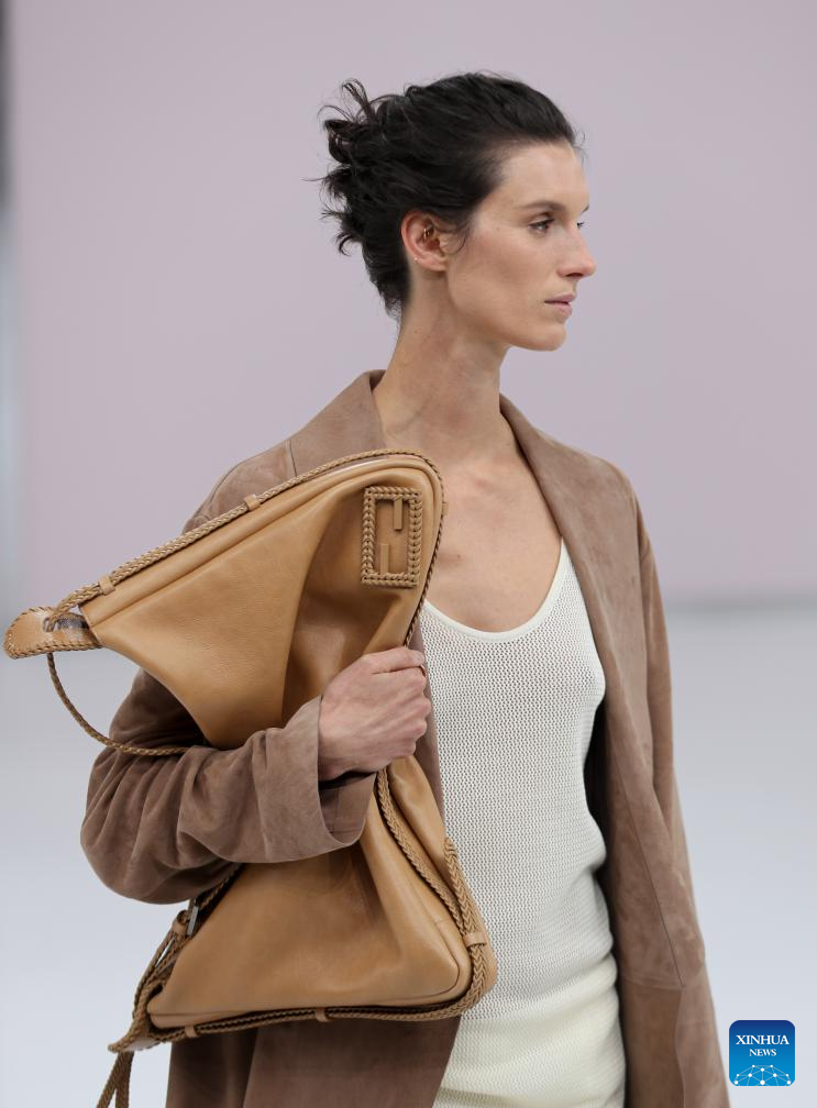 MILAN, 17 septiembre, 2024 (Xinhua) -- Modelos presentan creaciones de las colecciones de ropa femenina Primavera/Verano 2025 de Fendi durante la Semana de la Moda de Milán, en Milán, Italia, el 17 de septiembre de 2024. (Xinhua/Li Jing)