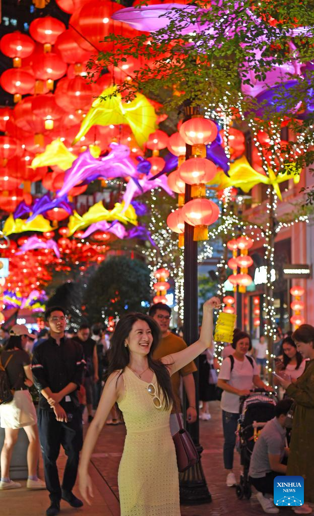 HONG KONG, 17 septiembre, 2024 (Xinhua) -- Personas visitan una feria de linternas durante el Festival de Medio Otoño, en Hong Kong, en el sur de China, el 17 de septiembre de 2024. (Xinhua/Chen Duo)