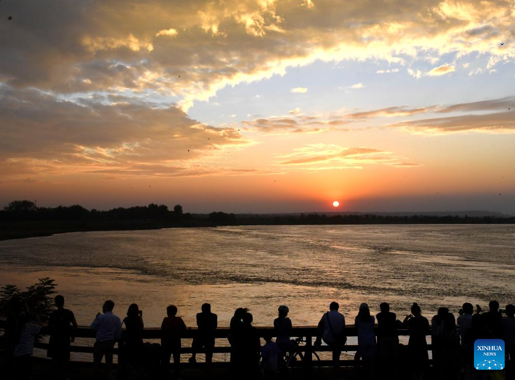 BEIJING, 17 septiembre, 2024 (Xinhua) -- Turistas disfrutan del paisaje del atardecer en un parque, en Zhengzhou, en la provincia de Henan, en el centro de China, el 17 de septiembre de 2024. Los chinos disfrutaron de tres días de vacaciones por el Festival de Medio Otoño, que este año cayó el 17 de septiembre. (Xinhua/Zhou Yong)