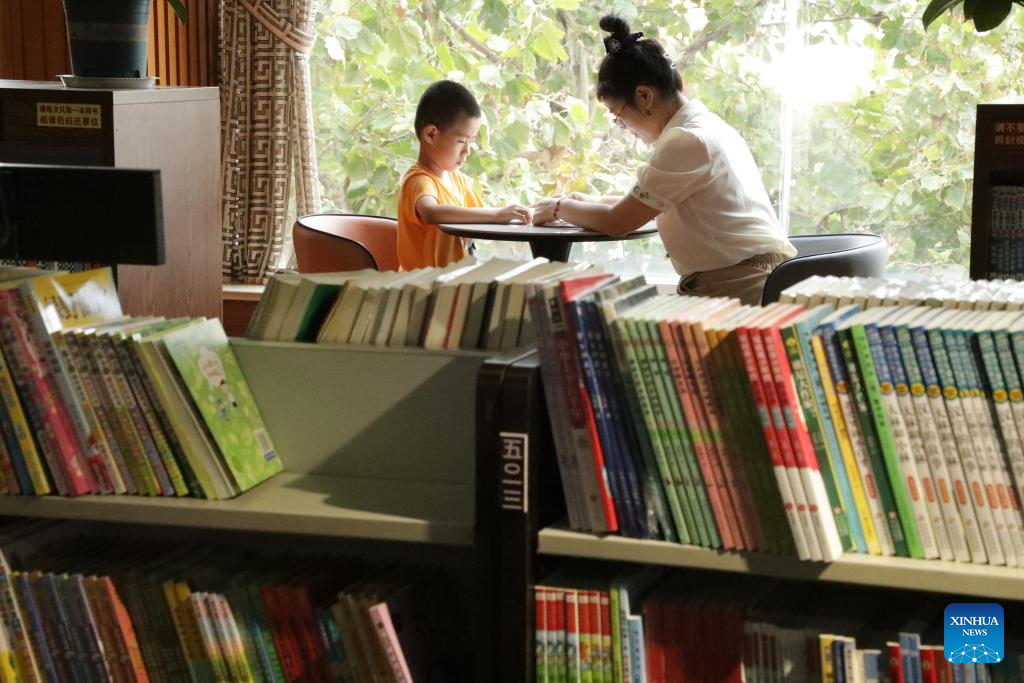 BEIJING, 17 septiembre, 2024 (Xinhua) -- Personas leen libros en una biblioteca, en Hengyang, en la provincia de Hunan, en el centro de China, el 17 de septiembre de 2024. Los chinos disfrutaron de tres días de vacaciones por el Festival de Medio Otoño, que este año cayó el 17 de septiembre. (Xinhua/Cao Zhengping)
