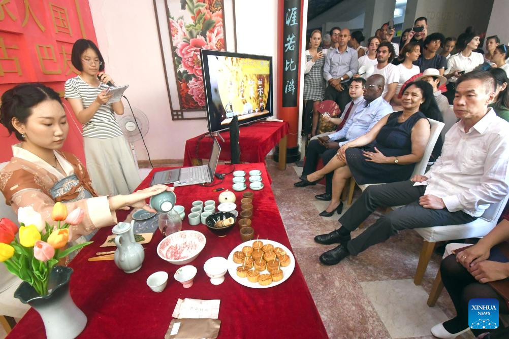 LA HABANA, 17 sep (Xinhua) -- Alumnos y profesores del Instituto Confucio de La Habana celebraron hoy martes el Festival de Medio Otoño con un homenaje a la cultura china, que incluyó una exposición de diferentes artes y una vistosa ceremonia del té.