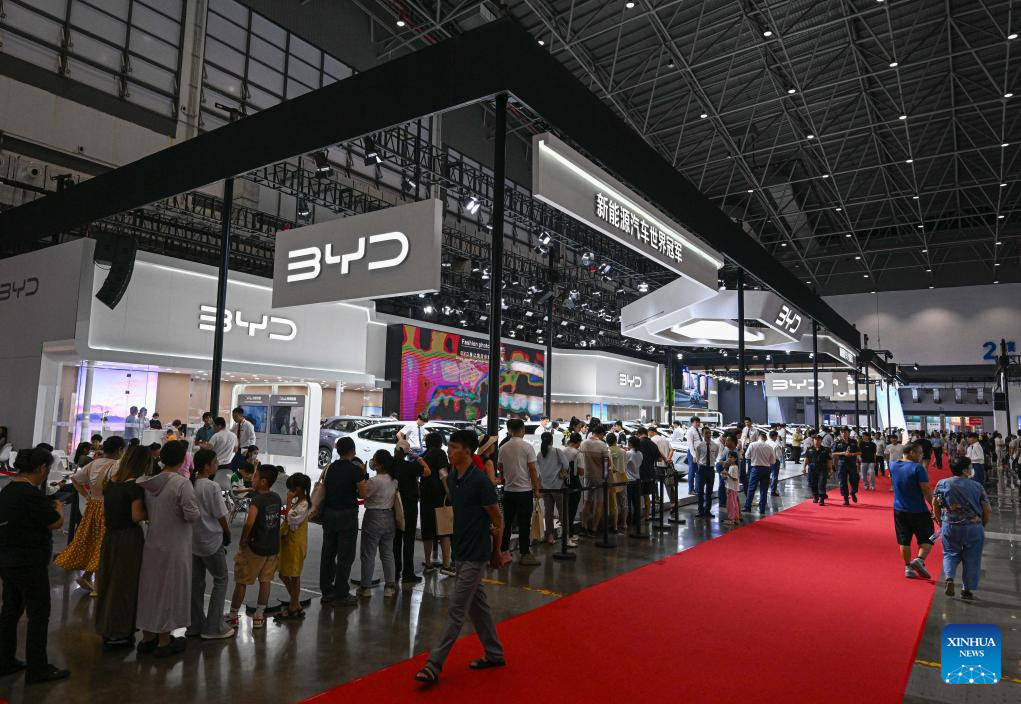 HAIKOU, 17 septiembre, 2024 (Xinhua) -- Imagen del 16 de septiembre de 2024 de personas visitando el Salón del Automóvil de Otoño de Hainan 2024 en el Centro Internacional de Conferencias y Exposiciones de Hainan, en Haikou, capital de la provincia de Hainan, en el sur de China. El evento se celebró del 13 al 16 de septiembre, con casi un centenar de fabricantes de automóviles mostrando sus productos en un área de exposición de más de 50.000 metros cuadrados. Alrededor del 70 por ciento de los automóviles exhibidos eran vehículos de nueva energía. (Xinhua/Pu Xiaoxu)