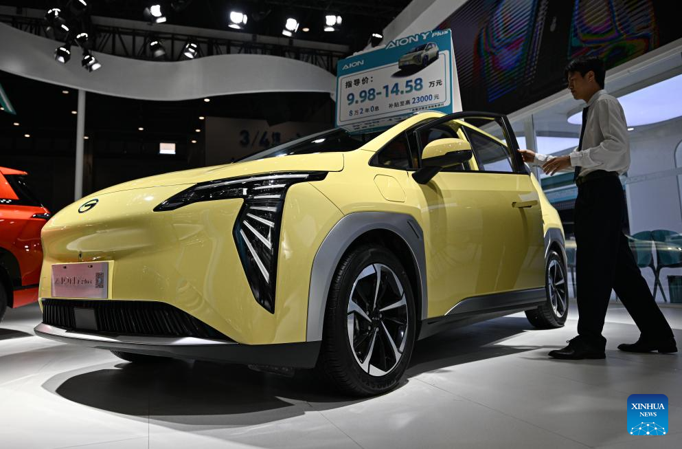 HAIKOU, 17 septiembre, 2024 (Xinhua) -- Imagen del 16 de septiembre de 2024 de un automóvil GAC Aion Y Plus visto en el Salón del Automóvil de Otoño de Hainan 2024 en el Centro Internacional de Conferencias y Exposiciones de Hainan, en Haikou, capital de la provincia de Hainan, en el sur de China. El evento se celebró del 13 al 16 de septiembre, con casi un centenar de fabricantes de automóviles mostrando sus productos en un área de exposición de más de 50.000 metros cuadrados. Alrededor del 70 por ciento de los automóviles exhibidos eran vehículos de nueva energía. (Xinhua/Pu Xiaoxu)