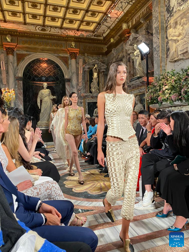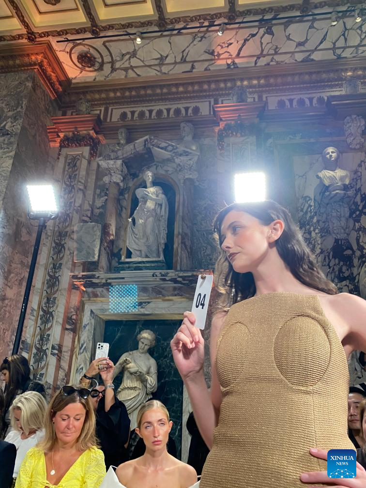 LONDRES, 18 septiembre, 2024 (Xinhua) -- Imagen del 17 de septiembre de 2024 de modelos presentando creaciones de la diseñadora china Zhong Zixin durante un desfile de modas, en Londres, Reino Unido. La diseñadora china emergente Zhong Zixin sorprendió al público el martes al presentar su colección Primavera/Verano 2025 en un desfile de modas muy esperado en el centro de Londres. (Xinhua/Jin Jing)